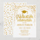 Graduation Party Einladung mit Confetti Elegant modernes einfaches Design in Weiß mit Imitaten Glitzer Gold und Drehbuch Schriftart. Ideal für ein elegantes Party.