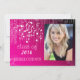 Glühende Lichtzeichen + heißer, rosa und schwarzer Hintergrund illustriert auf dem individuellen Foto Abschluss Ankündigung + Party Einladungen. Sämtliche Beispieltexte und Foto können mit Ihrem eigenen Text und Bild vollständig angepasst werden. Sie können auch die Farben, Schriftart und Größen des Textes ändern.
