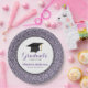 Die Papierplatte des Abschlusses verfügt über einen eleganten lila Imitat Glitzer-Rand und ist mit einer Grafik eines Abschluss-Hutes (Mörtel) versehen. Personalisieren Sie diese lustigen Party-Teller mit dem Namen, abschließ und Schule des Absolventen.