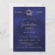 Eine moderne, elegante Abschlussfeier. Ein marineblauer blauer Hintergrund, goldener Text. Die blaue Farbe ist ungleichmäßig. Personalisieren und fügen Sie einen Namen, ein Jahr und Details hinzu.