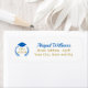Rücksendeetiketten für Ihre Abschlussankündigungen und Dankeskarten mit individuellem Farblogo in Blau. Enthält ein Bild einer blauen Abschlussmütze und Lorbeer mit editierbarem Abschlussjahr und Ihrer Adresse. Rot, Schwarz und andere Schulfarben sind ebenfalls in diesem gleichen Design erhältlich.