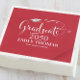 Dieses Design verfügt über ein Abschluss Graduate Napkin-Design, mit einer modernen Klasse Ihres Jahres, ein einfaches Grade Party, für die High School oder Uni feiern, mit roten eleganten Senior-Stil, mit Mörtel Tassel-Kappe, eine Kalligrafie Schriftart Typografie Drehbuch, ideal für Glückwunschfeiern, mit minimalistisch, klassisch whimsical Vintag