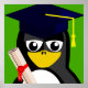 ABSCHLUSS PENGUIN TRAGEN GAP UND GOWN UND HALTEN HOCHSCHULDIPLOMA