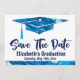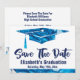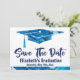 Schöne, einfache moderne Abschluss Save the Date Karte zu senden an Familie und Freunde. Die Farbe Blau und Weiß des Marmorbodens ist im Swirl-Look gehalten. Wunderbare Karte zum rett eines Datums für einen Abschluss.