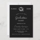 Eine moderne, elegante Abschlussfeier. Ein schwarzer Hintergrund, weißer Text. Personalisieren und fügen Sie einen Namen, ein Jahr und Details hinzu.
