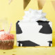 Einfaches Abschluss Packpapier für den Typ, der geschlossen ist. Schwarzweiß-Farbschema. Eine Silhouette eines Männchens mit einer Graduationskappe. Ideal, um alle Ihre Gradgeschenke zu verpacken.