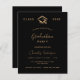 Eine moderne, elegante Abschlussfeier. Ein schwarzer Hintergrund mit einer goldenen Kappe. Personalisieren und fügen Sie einen Namen, ein Jahr und Details hinzu. Goldene Buchstaben.