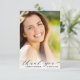 Ein moderner Abschluss Dankeschön-Karte mit dem Foto des Absolventen überlagert mit "danke" in einem stilvollen Drehbuch und ihren Namen und Klasse Jahr in der einfachen Typografie. Fügen Sie auf der Rückseite ein zusätzliches Foto hinzu, personalisieren Sie eine Dankeschön-Nachricht und fügen Sie ihren Namen in ein signaturähnliches Skript ein.