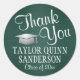 Fügen Sie eine elegante personalisierte Touch zu Uni oder High School Abschluss Dankeschön Karten und Gastgeschenke mit dunkelgrünen, weißen und silbernen runden Aufkleber / Umschlag Aufkleber. Der gesamte Text ist einfach anzupassen. Das Design zeichnet sich durch einen grün gebürsteten Hintergrund, Imitate aus rostfreiem Edelstahl-Mörtel und moderne Kalligraphie Stil Schrift Typografie. Bitte beachten Sie, dass Silber gedruckt ist, nicht metallische Folie. Herzlichen Glückwunsch an den Absolventen!