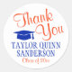 Fügen Sie eine elegante personalisierte Touch zu Uni oder High School Abschluss Dankeschön Karten und Gastgeschenke mit orange und blau rund Aufkleber / Umschlag Aufkleber. Der gesamte Text ist einfach anzupassen. Das Design zeichnet sich durch einen weißen Hintergrund, eine blaue Mörtel-Kappe und eine moderne Schrift-Typografie im Kalligrafiestil aus. Herzlichen Glückwunsch an den Absolventen!