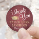 Fügen Sie eine elegante personalisierte Touch zu Uni oder High School Abschluss Dankeschön Karten und Gastgeschenke mit bordeauxfarbenen, weiß und gold rund Aufkleber / Umschlag Aufkleber. Der gesamte Text ist einfach anzupassen. Das Design besticht durch die rot gebürsteten Imitate mit metallischem Hintergrund, die Mütze aus Imitat-Folien und die moderne Schrift-Typografie im Kalligrafiestil. Bitte beachten Sie, dass Gold farblich gedruckt ist, nicht als Folie. Herzlichen Glückwunsch an den Absolventen!