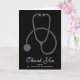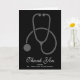 Ein Abschluss Dankeschön-Karte mit einem grauen Stethoskop auf einem schwarzen Hintergrund. Personalisieren Sie Ihre Daten mit einem Namen auf der Vorderseite und einer Nachricht auf der Innenseite. Stilvolles, elegantes Design.