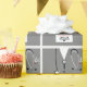 Kreatives Geschenkpapier-Design mit grauen Klinikscheuchen, Stethoskop und einem Schweizer Armeemesser. Bearbeiten Sie den Text, um den Namen des Arztes hinzuzufügen.