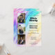 Ein lebendiger Hintergrund mit Regenbogenmarmor setzt die Bühne für diese kühne, moderne Einladung zur Abschlussfeier. Sie enthält drei anpassbare Fotos für das Titelblatt, mit denen Sie die Persönlichkeit und die stolzesten Momente des Absolventen präsentieren können. Alle Textfelder sind vollständig editierbar, sodass Sie Namen, Abschlüsse, Daten und Veranstaltungsdetails in Ihrem eigenen Stil leicht personalisieren können. Das Layout bleibt sauber und übersichtlich ohne zusätzlichen Text auf der Rückseite, während ein integrierter QR-Code auf der Rückseite eine schnelle und bequeme RSVP-Option für die Gäste bietet. Ein leuchtendes, festliches Design, das Farbe, Energie und Anpassung für eine herausragende Abschlussanzeige vereint.