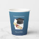 Glückwunsch an die Absolventen. Mortarboard und Diplom mit bearbeitbarem Text auf blauem Hintergrund.