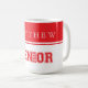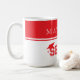 Grad-Keramik-Kaffeetasse wird in einem rot-weißen Farbdessin gezeigt.