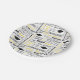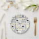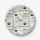 Party-Papierteller mit einer Feier von Abschlusskappen und gedruckten Nachrichten.