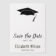 ''Save the Date' für eine Abschlussfeier mit diesem Schwarz-Weiß Save the Date. Sie können es mit dem Namen und dem Party des Absolventen personalisieren. Die Kappe eines Absolventen ist oben über dem Text.
