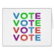Blau, grün, lila und rot - das Wort ABSTIMMEN in großen, verzerrten Blockbuchstaben. Teilen Sie die Gefühle über Wahlen. Das Blau repräsentiert Demokraten, grün die Umwelt, lila für Unabhängige und rot für die Republikaner.