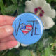 Im Nachhinein würde ich eher den Button mit Magnet bestellen... damit dieser bei jeder Kleidung angebracht werden kann. Sehr gute Bildqualität