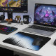 Abstract Blue Glitch Art Crescent Moon Night Sky Mousepad