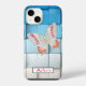 Trendy, simple monochromatic color Abstract neon pink Acrylic Paint Butterfly Monogram and personalized with a name, monogram or custom text in your choice of font styles. OPTIONS: Example shown on iPhone 14 model and case style Barely There - other phone models and case style are shown on the order page.