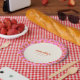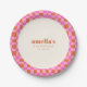 Abstract Checkered Art Pink Orange Custom Bridal Shower Paper Plates