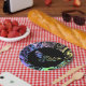 This simple paperplate has an abstract swirl pattern with multiple different colors. With an owl!