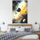 This unique piece transports you to an uncharted universe where planets dance in perfect harmony, creating a cosmic spectacle of abstract colors and shapes.