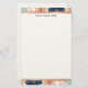 The design incorporates abstract floral patterns in shades of blue, peach, and white. A rose gold border frames the main writing area, which includes placeholder text for customized names. You can easily modify the text, font, and color palette to suit your preferences.