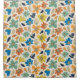 A playful, seamless repeating pattern featuring stylized multicolored flowers and leaves with textured, sketchy edges on a cream background.