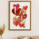 Abstract Hearts and Gold LOVE Typography Art Poster