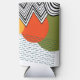 This seltzer can cooler has a mid-century modern design of curvy and zigzag lines in black, circles in yellow, orange, and green, and a rectangle made from dashed teal lines. If you want the same design with different colors, message me.