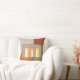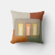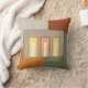 This minimalist window illustration throw pillow features a stylized depiction of three glowing windows, rendered with clean black outlines and soft interior lighting effects using muted terracotta, sage green, and warm grey.