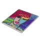 My colorful abstract portrait of a red haired woman is printed on ceramic tile