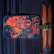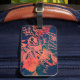 Beauty and the Grunge. Personalize with your initials. Textured rusty red and orange paint daubed luggage tag decorated with rose illustration.