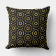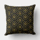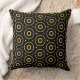 BOOM TOWN Accent Coussin. Motif de cercle abstrait noir et or.