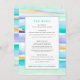 Abstrait événement de marée tropicale colorée ou menu mariage. Idéal pour un mariage de plage tropical ou côtier ou pour un repas de quatre plats. Modifiez ce menu de quatre plats avec vos propres options de repas. D'autres articles correspondants sont disponibles. Lignes de marées tropicales d'art abstrait originales en aqua turquoise, jaune, bleu et blanc peint à l'encre et à la gouache et dessiné par Sarah Trett pour www.mylittleedenweddings.com