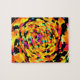 Dieses kühn abstrakte ist mit Tigerfarben in Orange, Gelb und Schwarz verwirbelt, mit Kalkgrün, Rosa und Türkis.