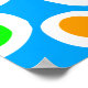Ein ansprechendes handgezeichnetes abstraktes Design, bestehend aus runden Formen in Weiß, Orange, Grün und Blau. Dies ist ein vektorbasiertes Design, so ist in allen Größen verfügbar.