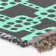 Ein detailliertes, abstraktes Wiederholmuster, bestehend aus einem Netzwerk miteinander verbundener rechteckiger Formen, die jeweils mit zufälligen Punkten oder Löchern verziert sind, erinnert vielleicht an eine seltsame Stadt mit Gebäude, die wie Emmentaler Käse aussehen. Die Hintergrundfarbe dieses Designs kann ebenfalls geändert werden, sodass es in vielen verschiedenen Kombinationen verfügbar ist.