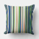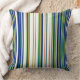 Abstraktes Design aus Streifen verschiedener Breiten in einer Palette von Blau, Creme, Grün und Rot.