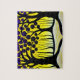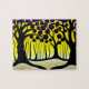Die Blätter auf den Bäumen sind sehr lila und scheinen im Sonnenlicht zu leuchten. Der Hintergrund des Designs ist eine hellgelbe Farbe, die dazu beiträgt, dass sich die lila Bäume auszeichnen.