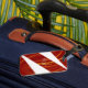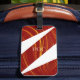 Das ist ein abstrakter Gepäckanhänger in Rot und Gelb. Jeden Tag etwas für alle, was es zu zeigen gilt!