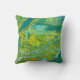 Dieses Kissen zeichnet sich durch ein einzigartiges und lebendiges abstraktes Design aus. Das Muster ist eine "schmutzige pour" Illustration in den Farbtönen Grün, Gelb, Limon und Zitrone, die eine fesselnde, fließende Farbmischung schafft.