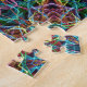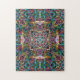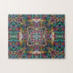 Genießen Sie dieses farbenfrohe digitale Kunstwerk mit einem symmetrischen Design, das an das auf einem spirografischen Set gezeichnet erinnert.