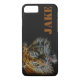 Tiger Gesicht mit Bild in Gold, Schwarz und Weiß in Neon-Kunstwerk auf stilvollen iPhone Gehäuse. Name Farbe und Stil können angepasst werden.