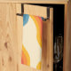 Die Küche ist mit einem abstrakten, orangefarbenen und blauen Retro-Küchentuch mit gewölbten Streifen versehen. Das kühl, modern und stilvoll eingerichtete Restaurant fügt jeder Küchendekoration eine einzigartige Touch hinzu.