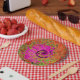 Heiß rosa Groovy Abstrakt Retro Liquid Swirl Malerei mit Orange, Gelb, Rot, Magenta und Schwarz Akzente. Farbenfrohe, abstrakte, psychedelische Design, dass Sie Liebe!