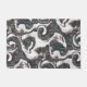 Weiße Flecken, die eine Mischung aus Hund und Pterodaktyl auf einem dunkelgrauen mit kleinen farbigen Spuren, die wie surreale Risse oder Fehler aussehen.